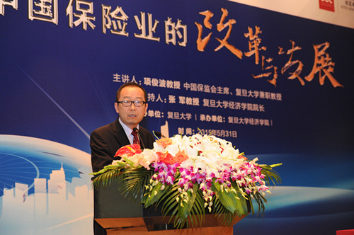 On the morning of May 31, Mr. Xiang Junbo, chairman of China Insurance Regulatory Commission and part-time professor of Fudan University, made a speech at Fudan about “Reform and Development of China’s Insurance Industry”. This speech was one of the series of activities marking the 110th anniversary of Fudan University and the 30th anniversary of the School of Economics. Over 400 people attended, including faculty members, students, alumni and insurance professionals. Prof. Zhang Jun, Dean of the School of Economics, presided over the speech and Prof. Chen Xiaoman, Vice President of Fudan University, made the welcome speech. Also present were Mr. Pei Guang, Director of Shanghai Bureau of China Insurance Regulatory Commission, Mr. Liang Xinjun, Vice Chairman and CEO of Fosun Group and President of Fudan University Alumni Association (Shanghai), and Mr. Wu Bin, Managing Director of Fudan University Alumni Association and Vice President of SMG.