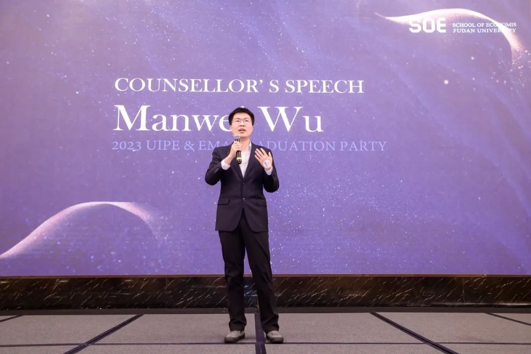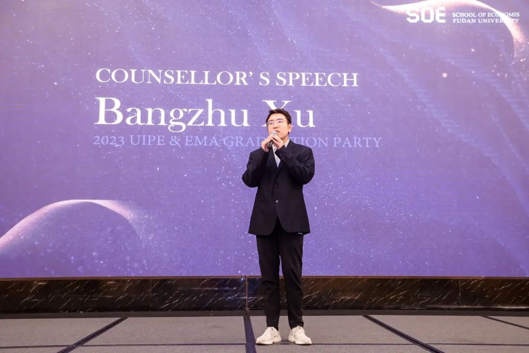 UIPE councelor Marvel Wu and EMA councelor Bangzhu Xu, representing the faculty and administration, expressed their heartfelt congratulations to the graduating class.