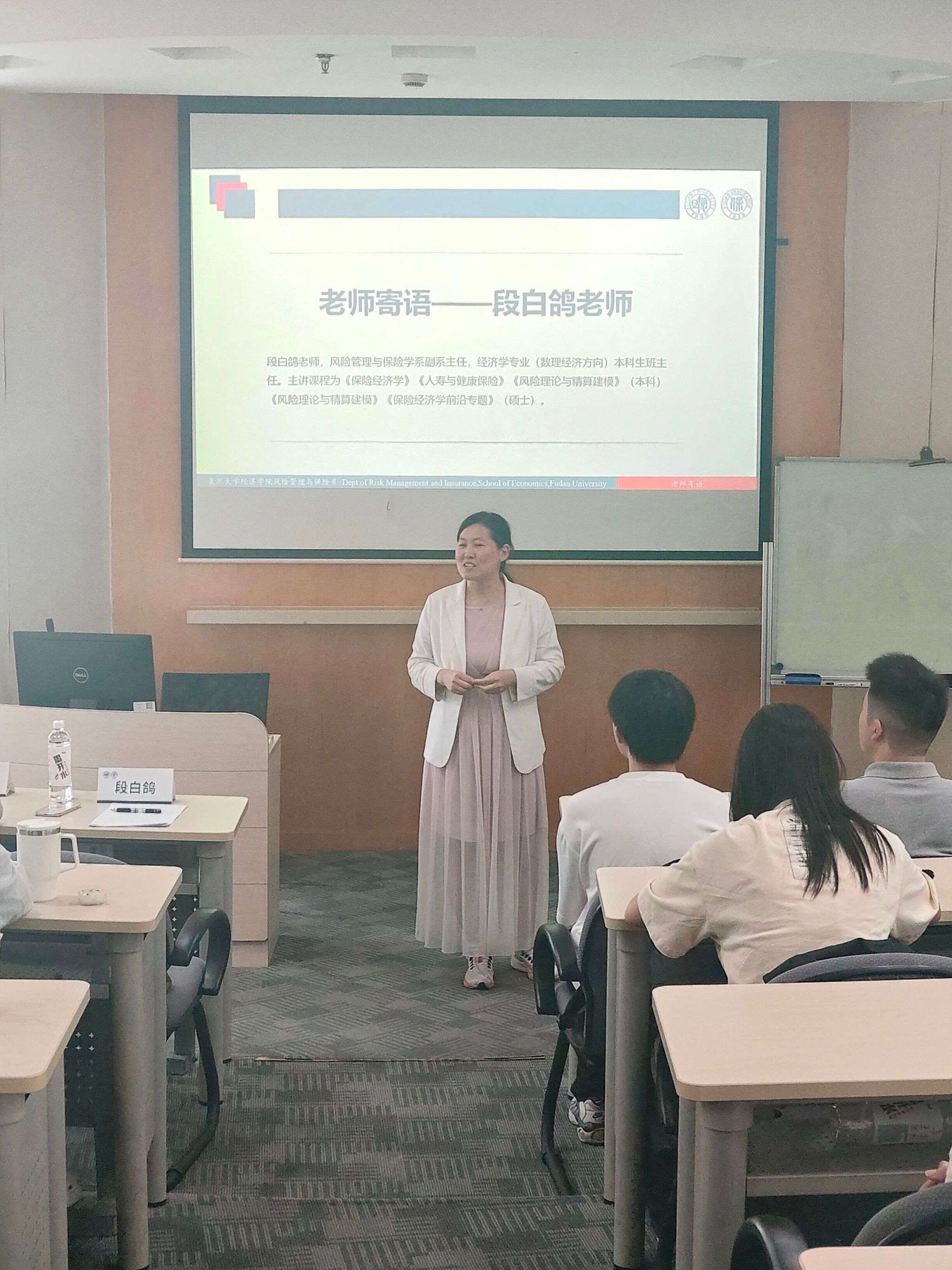 最后,她赠予大家三句寄语“学习是快乐的;跳出保险看保险;保险是更一般的金融”,期待大三的三门课程与大家共同诠释。