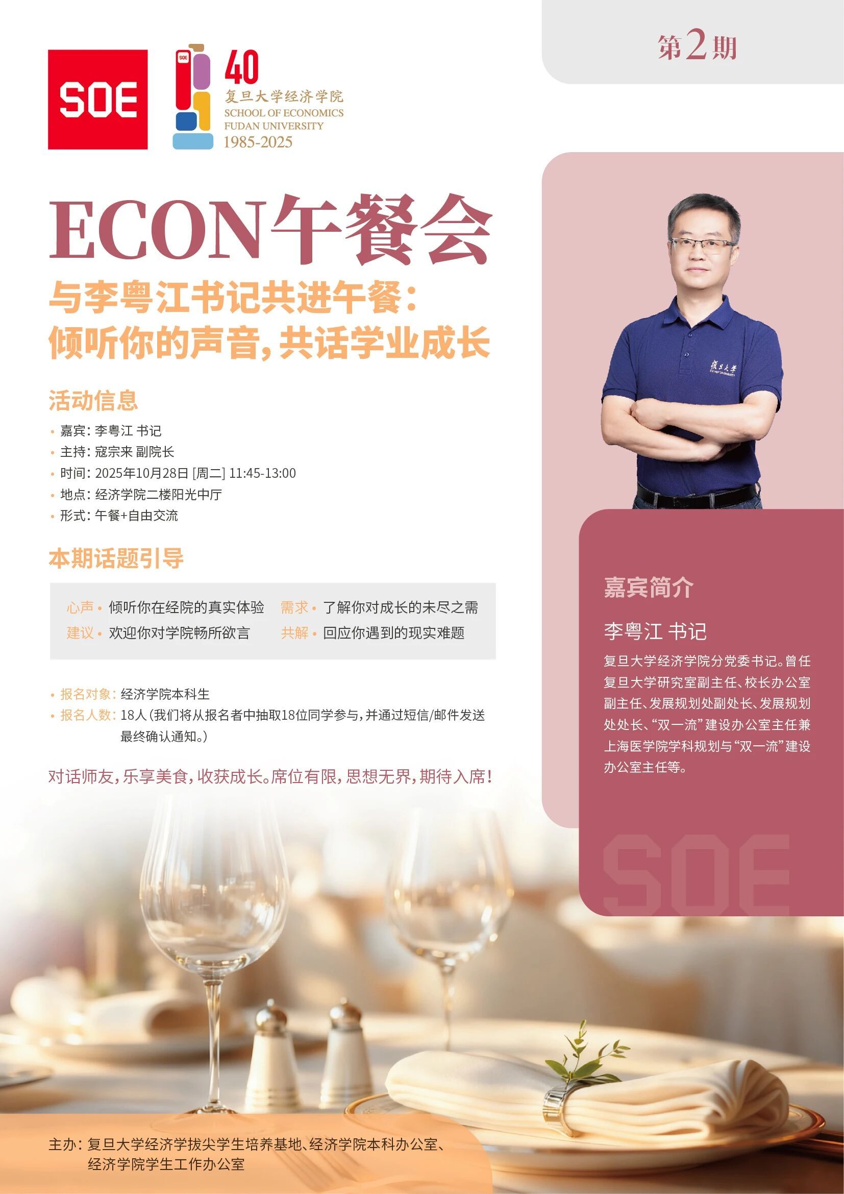 第2期ECON午餐会,我们特别邀请到李粤江书记,与我们围桌而坐,共进午餐。这是一次难得的机会,让我们与ag娱乐