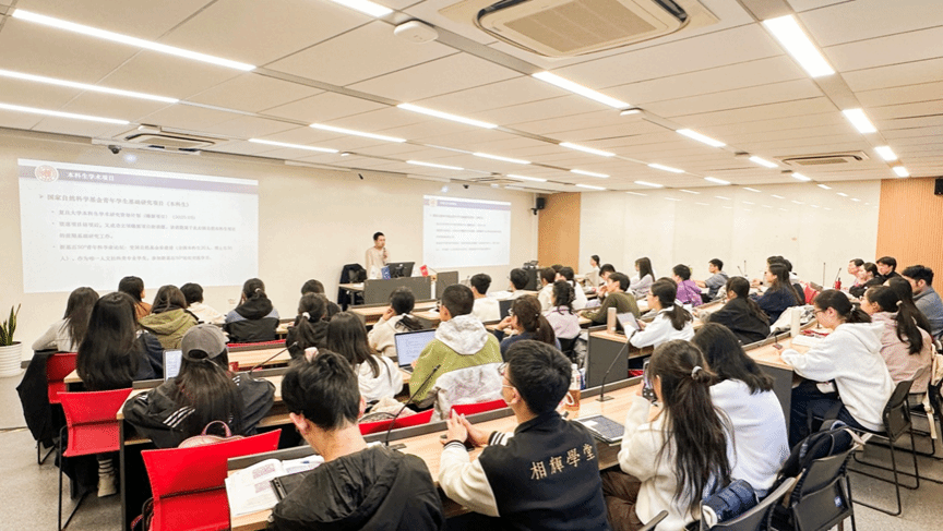 史学长倡导大家不用对未来规划过多担心焦虑,可以根据“未来的自己是否会后悔”来为当下的选择提供一种标准,探索的过程是多元化的,比如学生工作、学术道路、创新创业等,而无限的可能正是螺旋式上升发展的源头。综上所述,问答环节如同一座桥梁,生动连接了疑问与答案。史学长亲切而务实的分享,为同学们在自我定位、学业规划与项目实践等方面 提供了前进方向的有益参考。