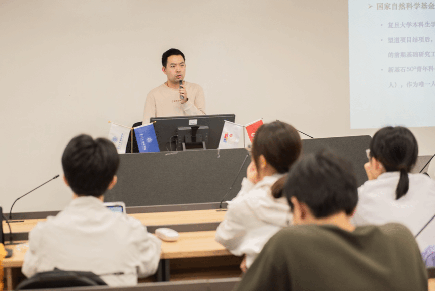 他幽默风趣地谈到,“一次没成功也没关系,我也是第三次才获得望道项目(复旦大学本科生学术研究资助计划)立项的。第三次那次就拿到了‘优秀’的立项评级。”在刚涉入科研领域的时候,多尝试、不放弃或许才是入门的秘诀。他向同学们分享了一位教授对科学问题的定义,“科学问题是可验证、可重复的”,并接着回顾自己在国家自然科学基金青年学生基础研究项目(本科生)的申请打磨中对真正科学问题的步步探索与追寻。“方法是一直在变化的”,大胆地推陈出新也许才是进步的关键所在。鉴于此,他鼓励大家不但需要提升构建课内知识框架的能力,而且还应从学术研究的角度增强思考和尝试解决问题的本领。他还特别提到,ag娱乐官网