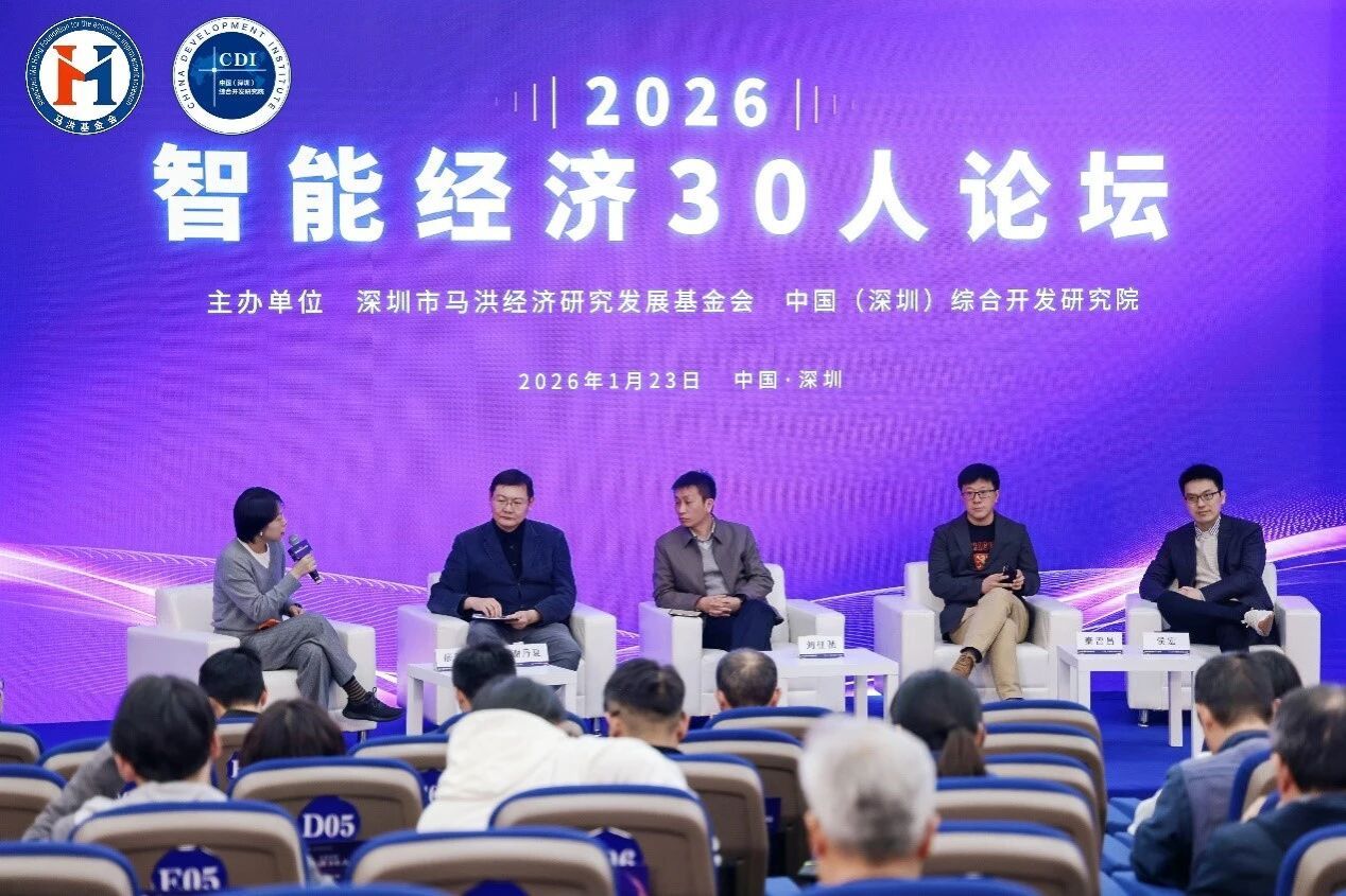 1月23日,智能经济30人论坛在深圳举行,论坛由综合开发研究院(中国·深圳)常务副院长郭万达主持,来自清华大学、北京大学、复旦大学、综合开发研究院(中国·深圳)、中国信息通信研究院等高校和单位的专家学者以及产业界代表齐聚一堂,围绕AI对经济、就业、治理带来的深远影响展开深度对话,为推动“十五五”时期智能经济高质量发展、打造中国式现代化新引擎贡献智慧与力量。