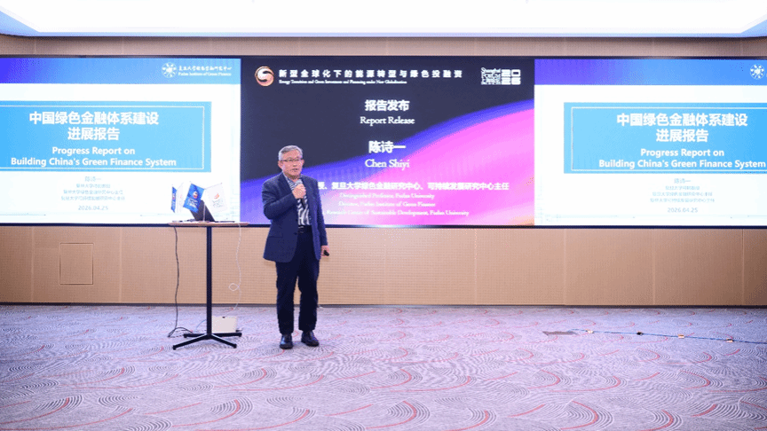 随后,会议进入报告发布环节。复旦大学绿色金融研究中心主任陈诗一教授发布了中国绿色金融体系建设进展报告。该报告系统梳理并回顾了中国在绿色金融体系建设中的十年历程与最新进展。陈诗一教授结合当前“十五五”规划开局之年的节点,从宏观、中观、微观三个层次科学研判绿色金融发展面临总量贡献与市场功能不足、结构性失衡与协同性不足、政策工具与市场机制效能待提升等多重挑战,同步针对性提出完善绿色金融顶层设计、强化三大核心功能、优化激励约束机制、深化市场化改革、强化多维协同联动、加强全球绿色金融治理合作六大落地对策,全面护航“双碳”目标有序推进。