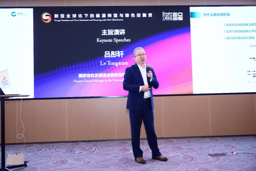 吕彤轩先生结合国家绿色发展基金的运作经验,分享了绿色基金赋能能源转型和“双碳”工作的实践成果,并介绍了多类清洁能源重点投资案例。他提出,国有绿色资本应坚持长期价值投资导向,兼顾财务回报、生态效益与社会效益,聚焦新型储能、绿色甲醇、循环经济等重点领域持续发力,以绿色金融力量助力绿色生产力培育和经济社会低碳高质量发展。