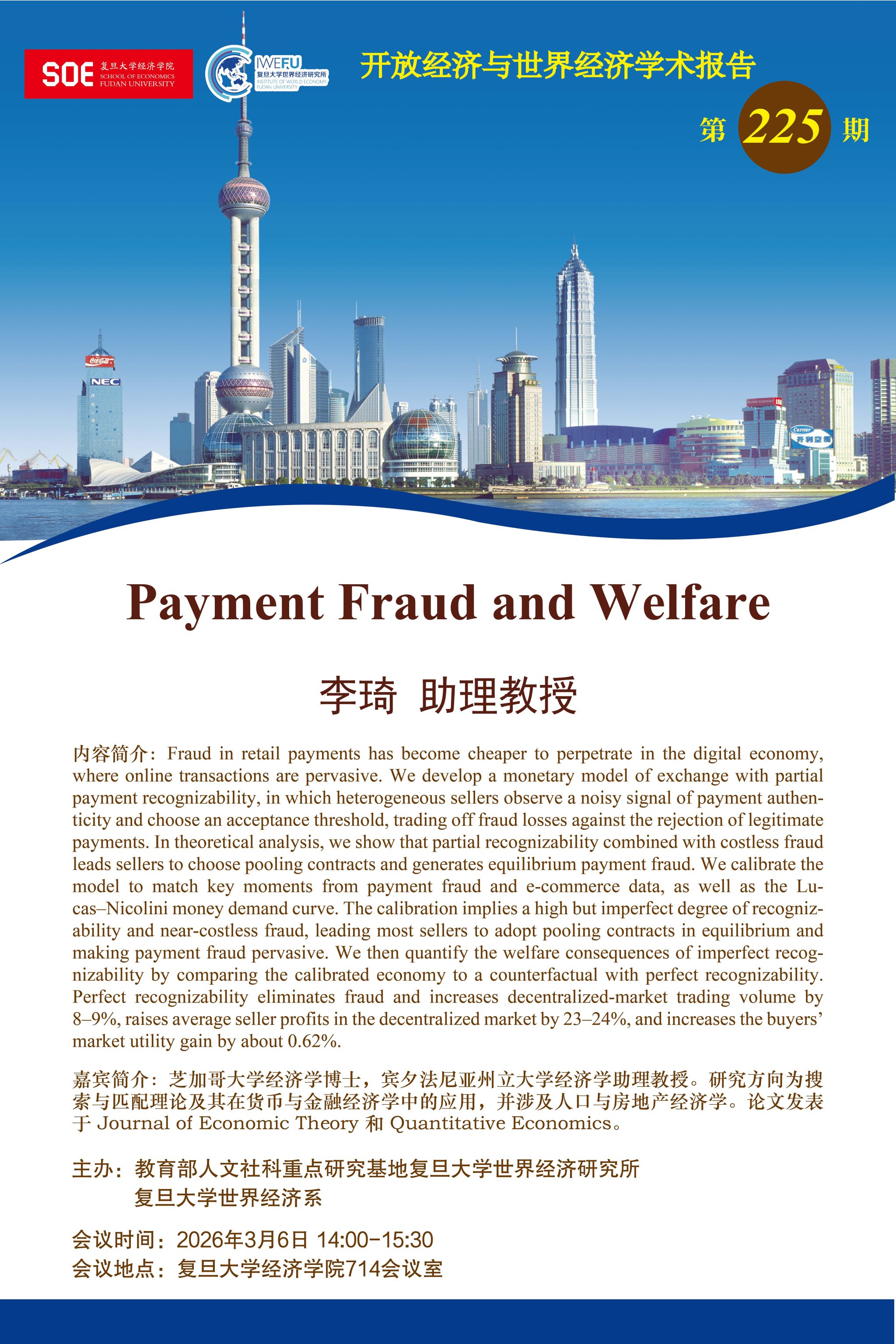 复旦大学世界经济研究所开放经济与世界经济学术报告第225期:Payment Fraud and Welfare