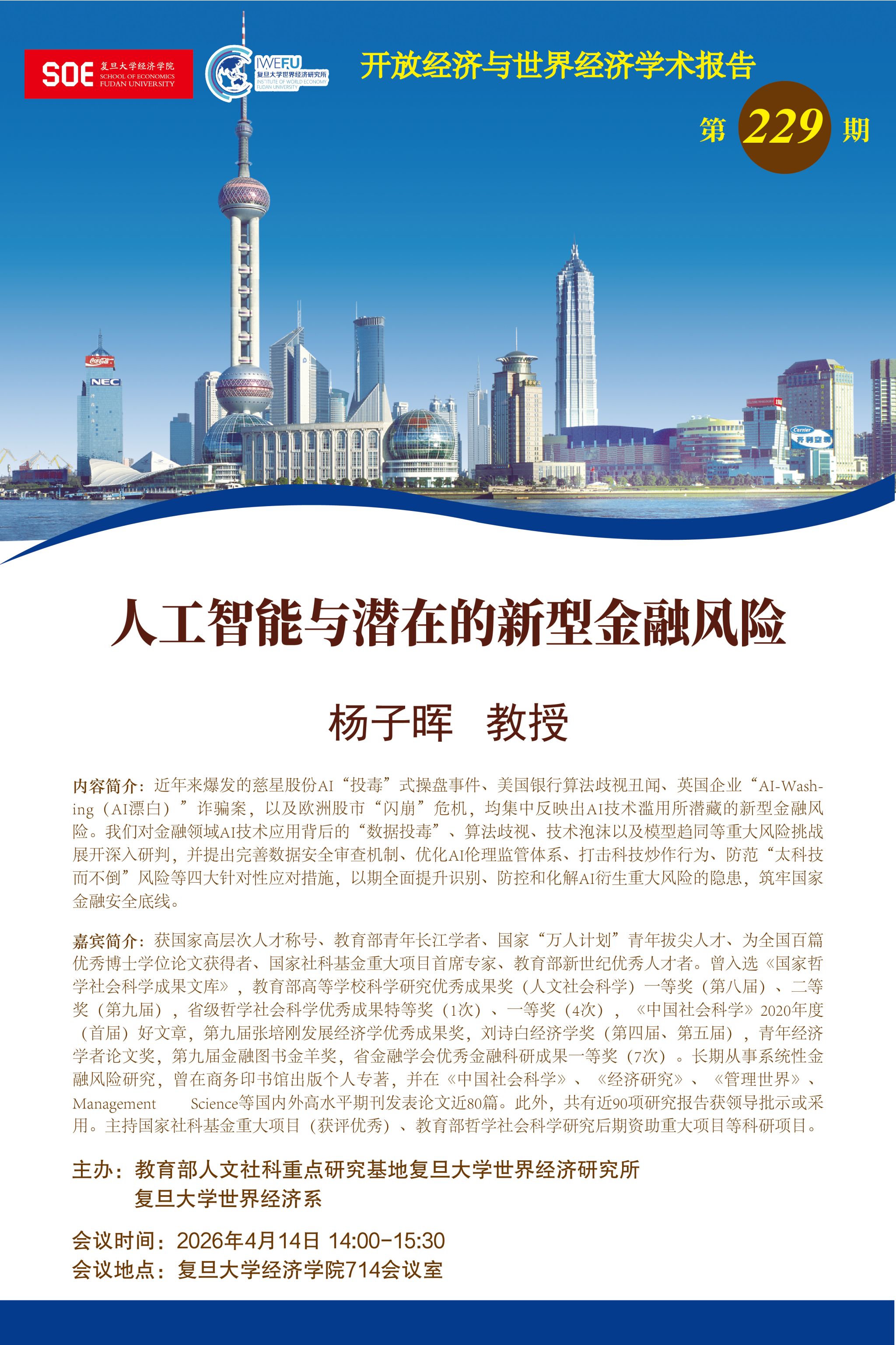 复旦大学世界经济研究所开放经济与世界经济学术报告第229期:人工智能与潜在的新型金融风险