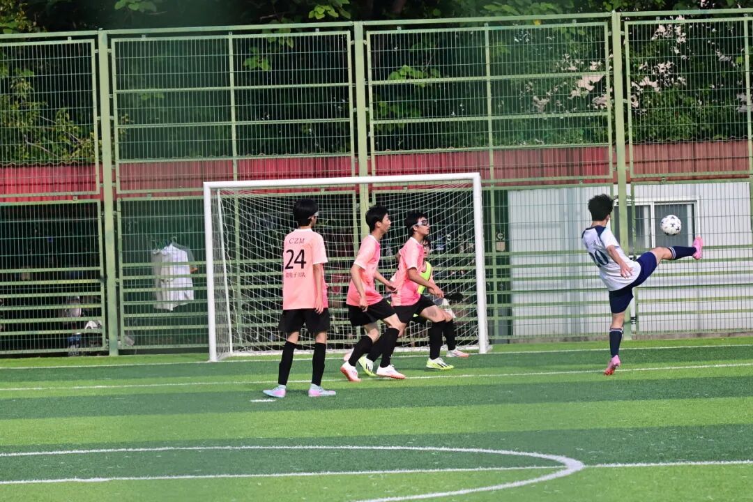陈子暄禁区前沿控球、闪开空档、冷静起脚——皮球划出完美弧线,直挂球门死角。
