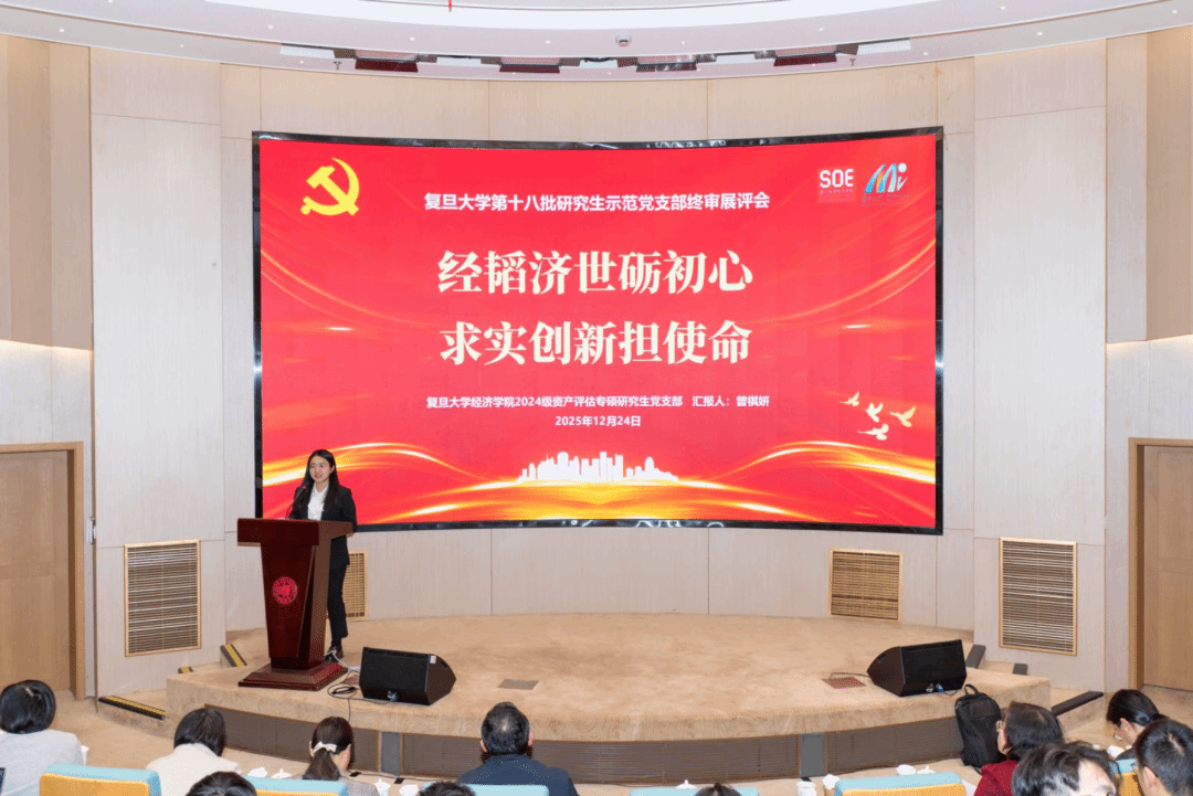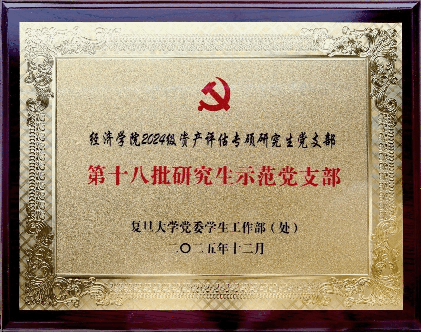 2024级资产评估专硕党支部凭借规范扎实的组织建设和特色鲜明的突出成效,从全校38个院系的126个支部中脱颖而出,成功获得复旦大学第十八批研究生示范党支部称号。