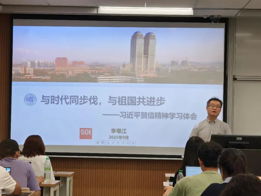 在《与时代同步伐,与祖国共进步——习近平贺信精神学习体会》课程中,李粤江书记围绕习近平贺信精神,系统回顾了复旦大学120年来与时代同行、与祖国共进的奋斗历程,深刻阐释了复旦大学扎根中国大地、服务民族复兴的使命担当;通过梳理从鸦片战争到中国共产党成立、从革命斗争到新中国建设、从改革开放到新时代的历史脉络,弘扬了伟大建党精神、井冈山精神、长征精神、抗战精神、延安精神、“两弹一星”精神、改革开放精神等中国共产党人的精神谱系;重点展现了复旦大学特别是ag娱乐官网