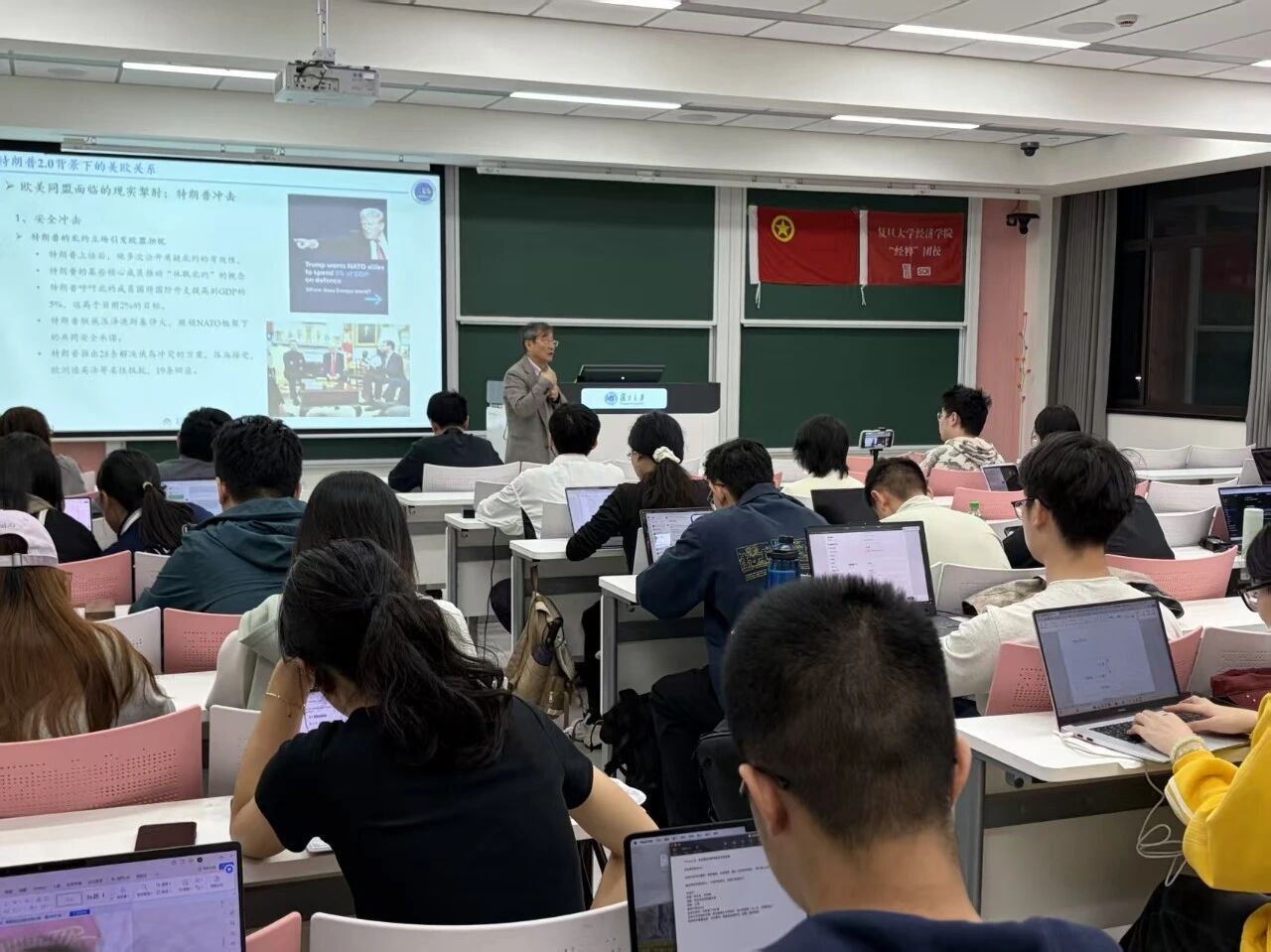 丁纯教授担任主讲嘉宾,为在场师生深入剖析了动荡局势下欧洲的走向与中欧关系的战略前景。讲座现场座无虚席,交流气氛热烈。